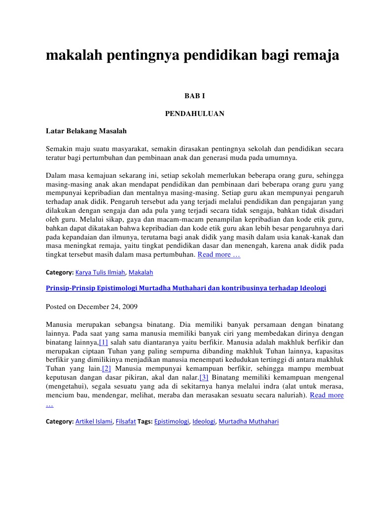 Makalah Pentingnya Pendidikan Bagi Remaja Pdf
